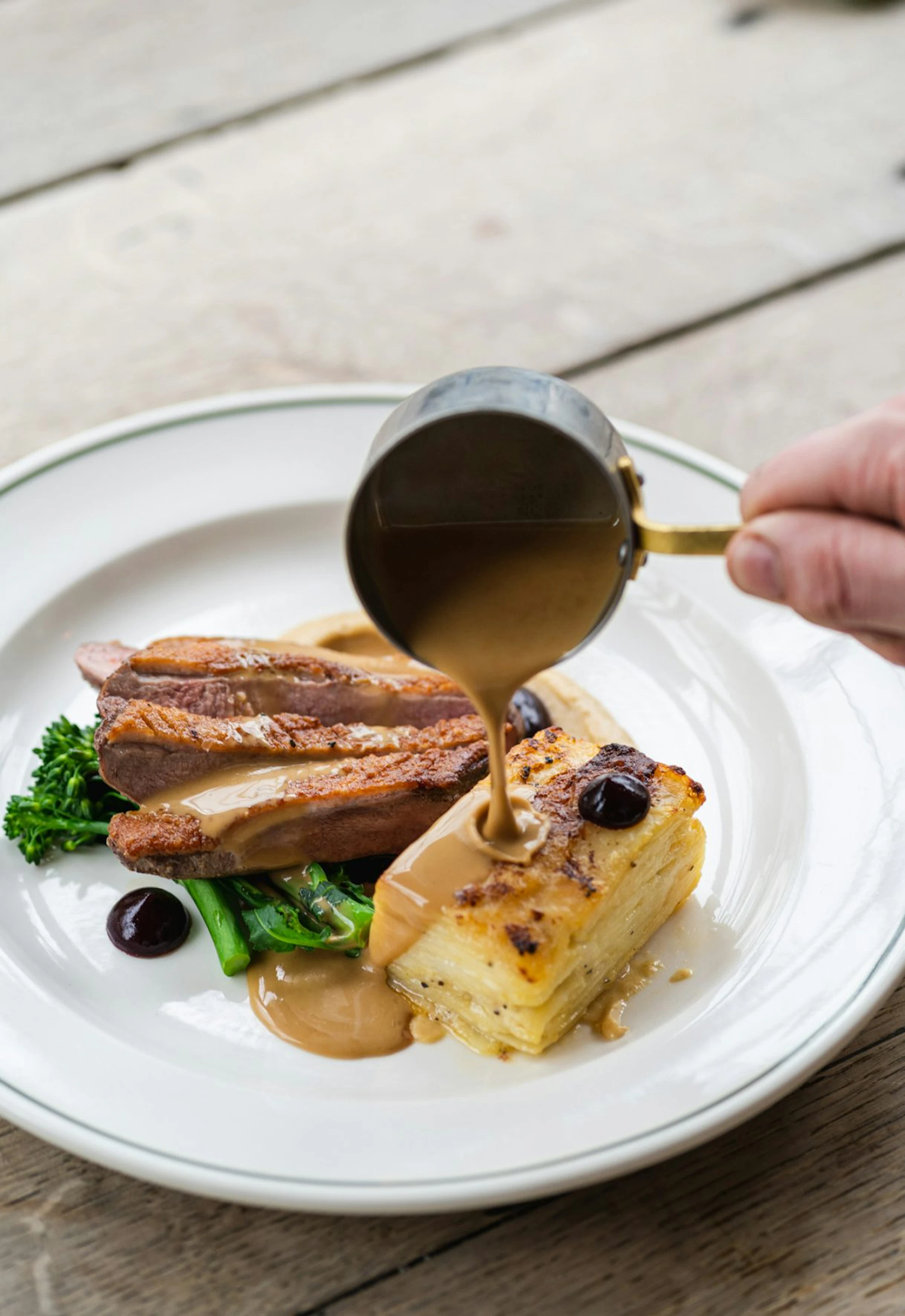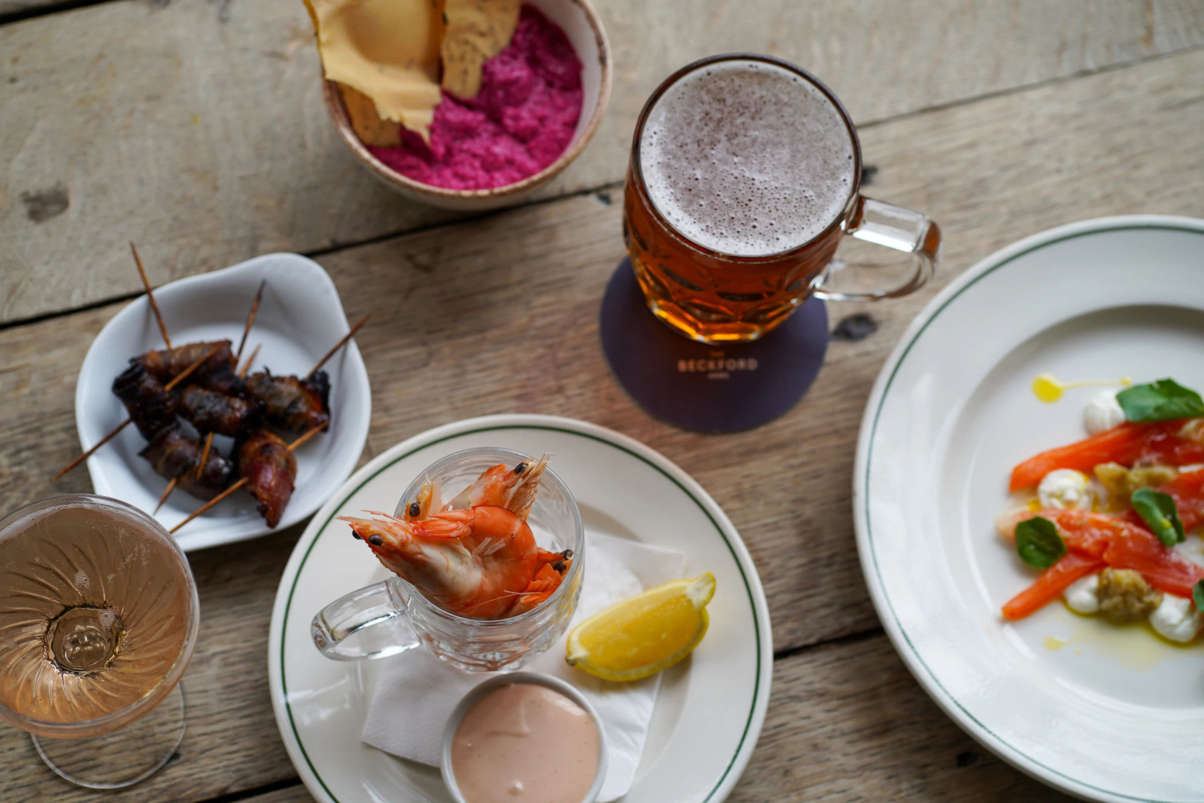 Our relaxed pub is the perfect environment for long lunches, sumptuous suppers and the chance to refuel after a day exploring the British countryside. In the summer months, the restaurant extends onto the sun-filled terrace and marquee for alfresco dining. Chef Adam Bristow and his talented team are committed to cooking the abundance of seasonal produce surrounding The Beckford. Meat and game from local farms, fish from the Cornwall coast and fresh leaves picked just a few steps away in The Beckford kitchen garden. The bar is also kept well-stocked with delicious snacks that are available throughout the day, the perfect post-walk fuel. To book a table, simply click 'dine' above.